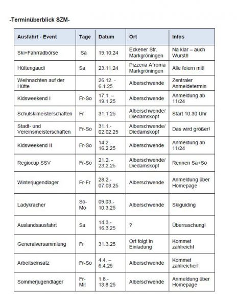 Terminübersicht 2024/2025
